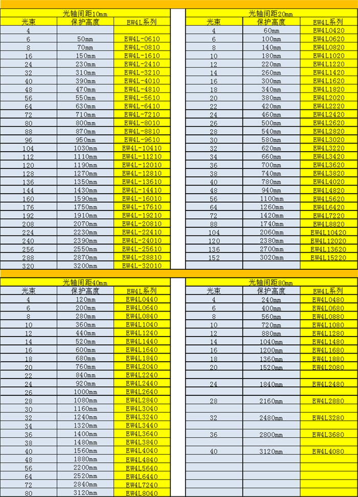 3、光軸間距: 10:10mm;20:20mm;40:40mm;80:80mm; |